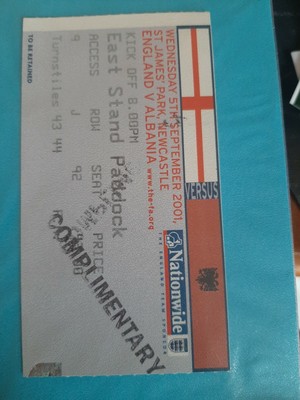 2001 England V Albania At Newcastle Match Ticket Ebay